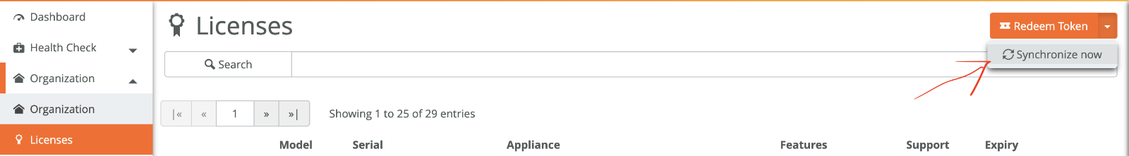 - Customer can login to the SCM, then go to Org > Licenses > Top right reedeem token drop down menu > Sync Licenses.